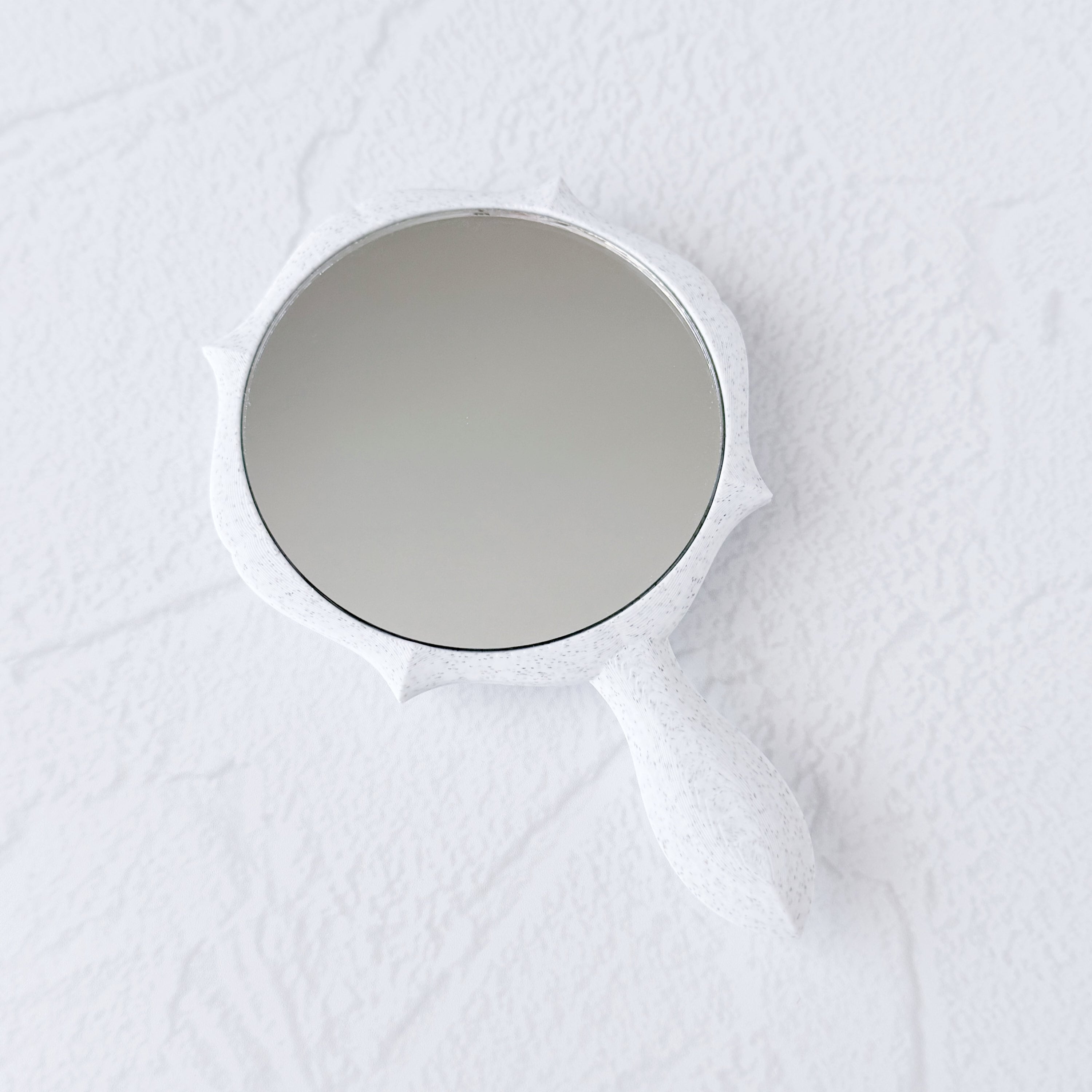 やわらかなフリルに包まれた、ハートのミラー。